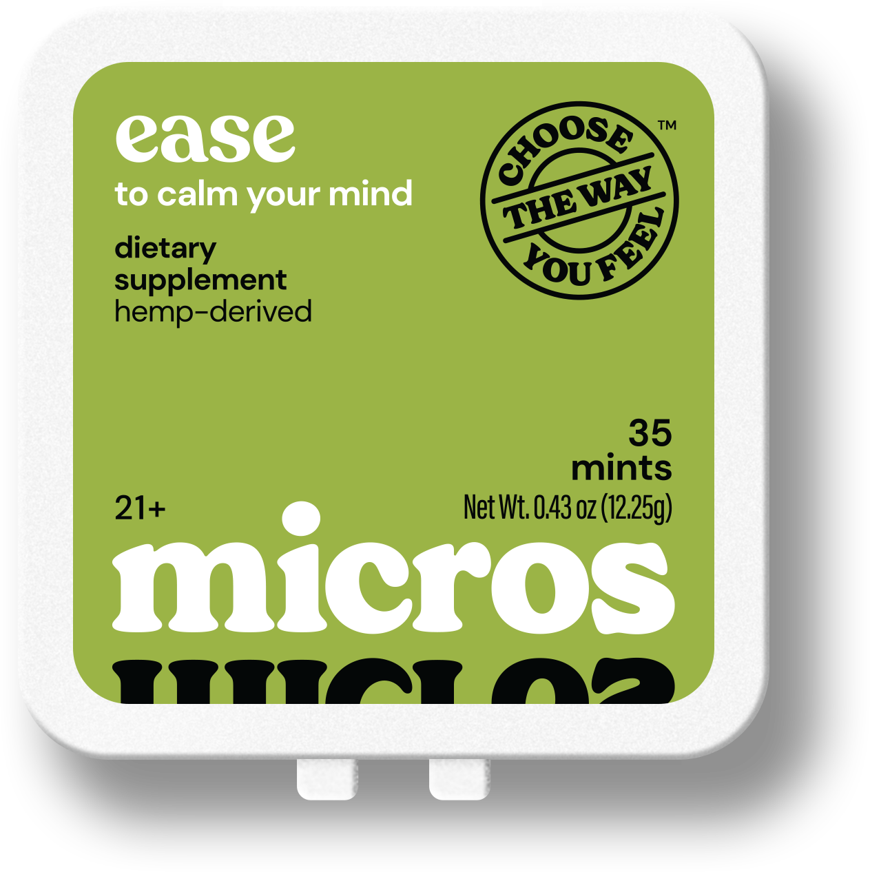 Our ease by micros mints offer a controlled way to enjoy the benefits of botanical goodness and L-theanine. Use ease when you want to feel a little calmer.